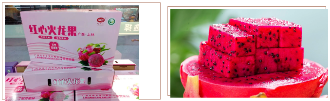 上林縣火龍果基地百畝連片種植的有12個,主要的品種為金都一號紅心火龍果,其特點(diǎn)是個大皮薄,果形渾圓,果肉紅色。全縣種植火龍果面積達(dá)3966畝,年產(chǎn)量1.68萬噸,縣內(nèi)有1家火龍果生產(chǎn)企業(yè)獲得授權(quán)使用南寧火龍果地理標(biāo)志標(biāo)識,獲得有機(jī)認(rèn)證1張,綠色食品1張,鴻棲高森金都一號紅心火龍果通過圳品評價。