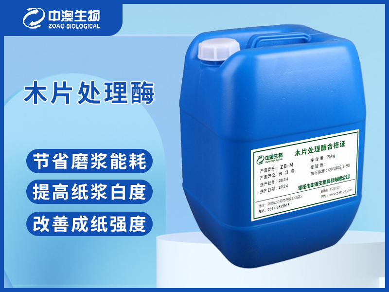 ZB-M木片處理酶是一種預(yù)處理原料木片的復(fù)合酶制劑,能夠?qū)⒛酒w維活化和松弛,加快藥液滲透,增加化學(xué)品反應(yīng)效率,有助于纖維分絲帚化和細(xì)纖維化,從而降低磨漿能耗。